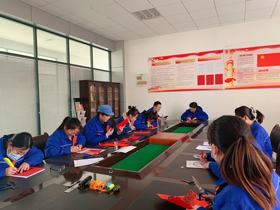 隨后,將制作花燈、剪紙的材料分發給大家,按照抖音中的制作教程進行講解,大家躍躍欲試,嚴謹的進行裁剪,折疊,粘貼,三倆人一起合作,不一會兒,幾個紅包,在默契配合下,被制作成一只只鮮紅喜慶、別樣精致的小花燈,各式各樣的剪紙作品。活動現場洋溢著熱鬧、溫馨的節日氛圍。